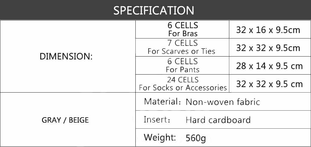 Description: PERFECT CLASSIFICATION KIT: Sort your underwear, bras, socks, neckties, and scarves with this 4 set Closet...