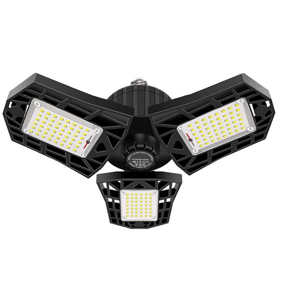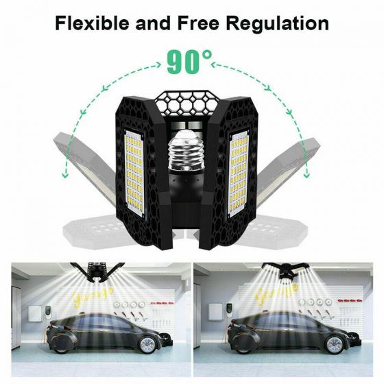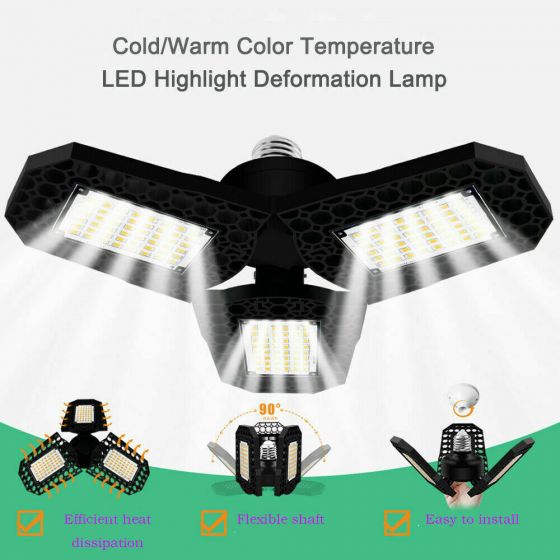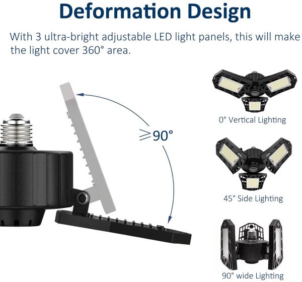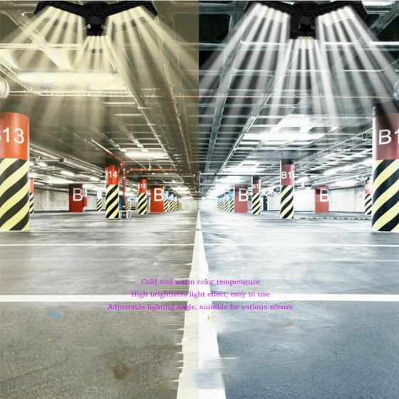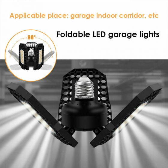 Description: Super Bright LED Garage Light: with 3-Leaf ultra-bright adjustable LED bulb heads, 6000/8000 lumens, 6000K daylight,...