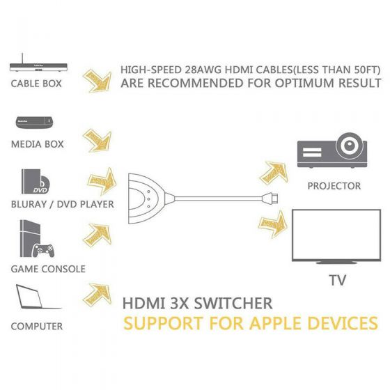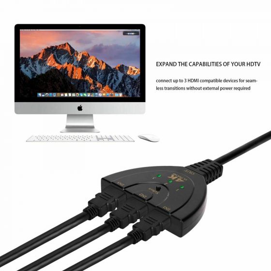 Description: HDMI Switch 4K, 3 Port HDMI Switch Splitter 4Kx2K with Pigtail HDMI Cable, Gold Plated Connector,...