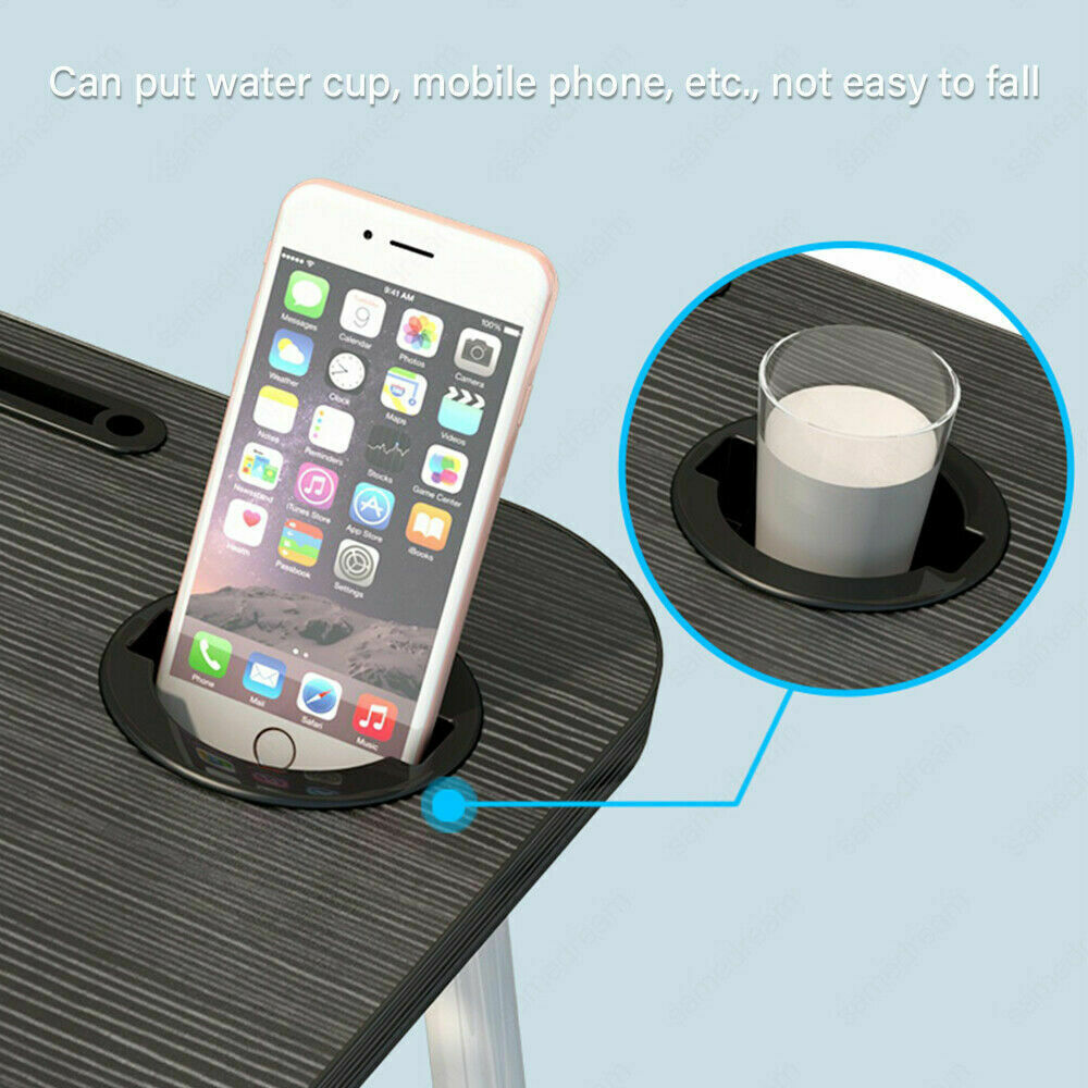 Laptop Stand Table Foldable Desk Computer Study Bed Adjustable Portable Cup Slot