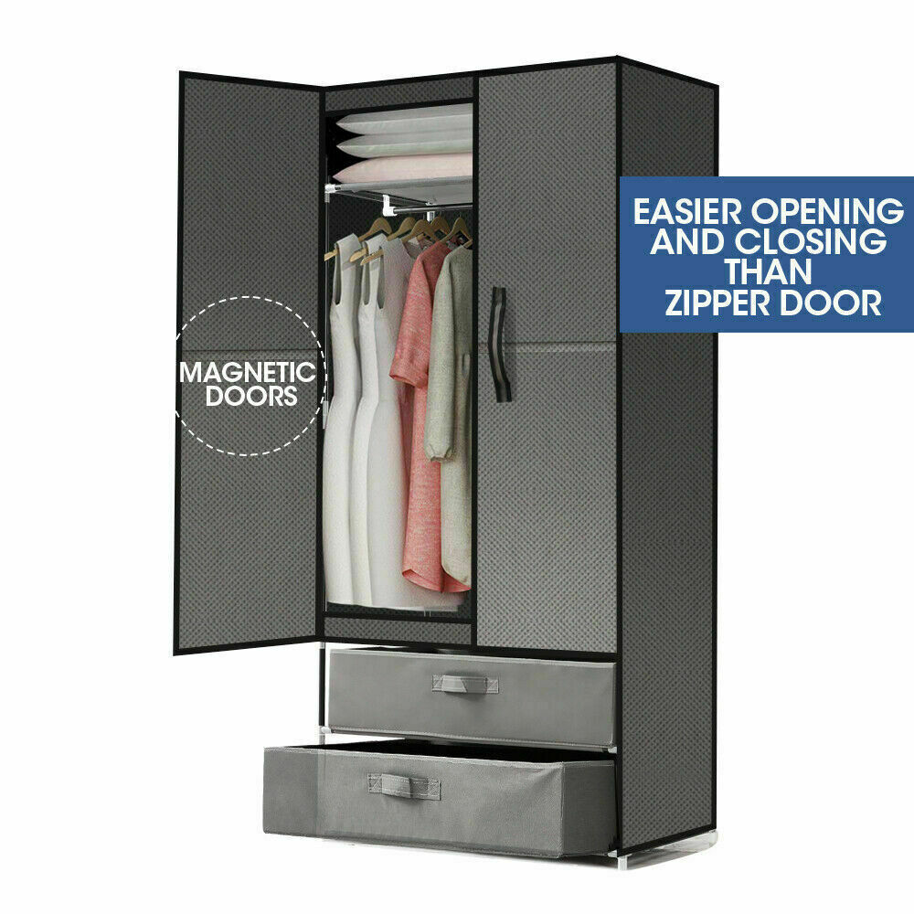 Large Portable Clothes Closet Wardrobe Storage Cabinet Organiser Unit with Shelf