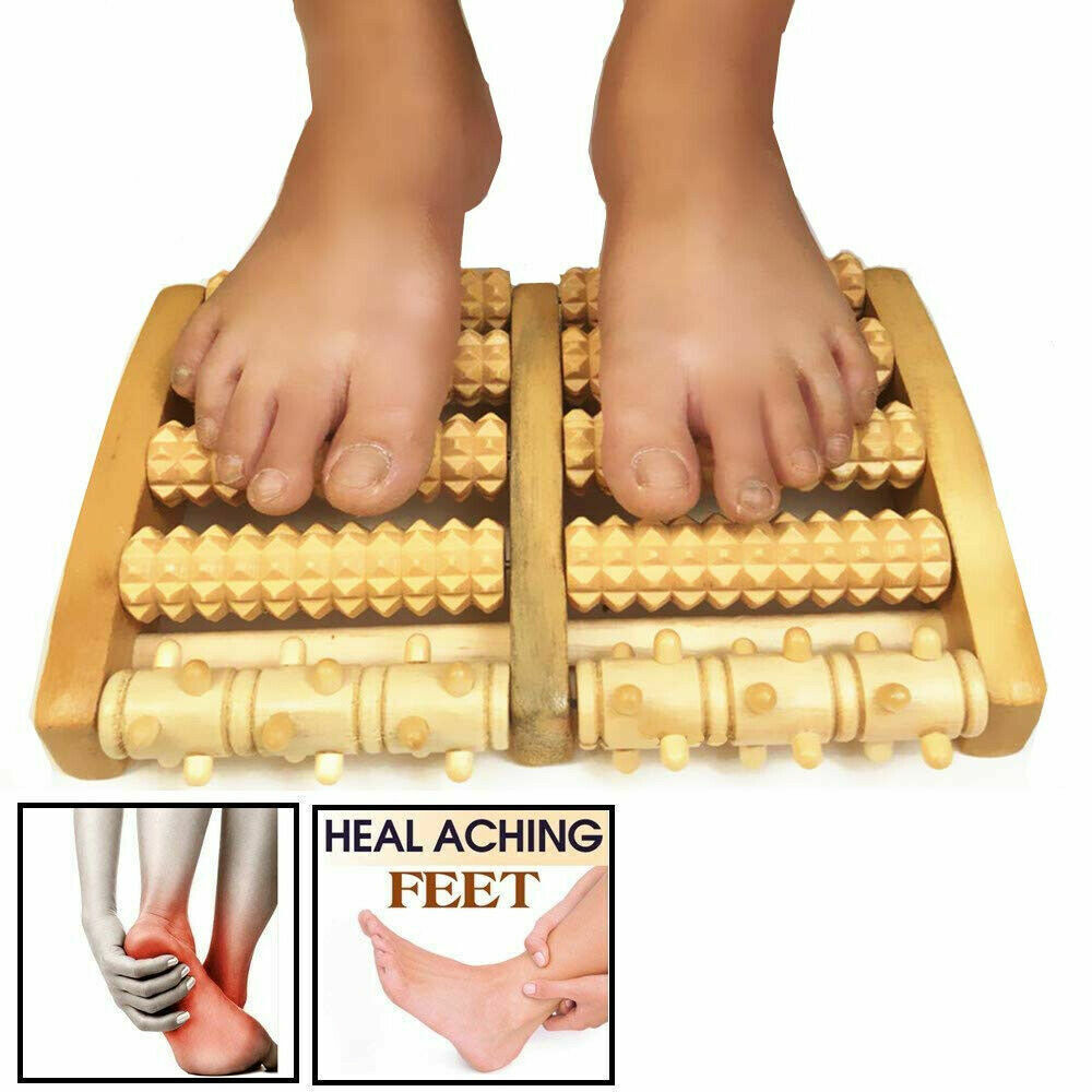 LARGE Wooden Foot Pain Massager 5 Roller Care Reflexology Relax Stress Relief Ne