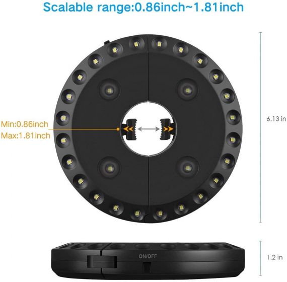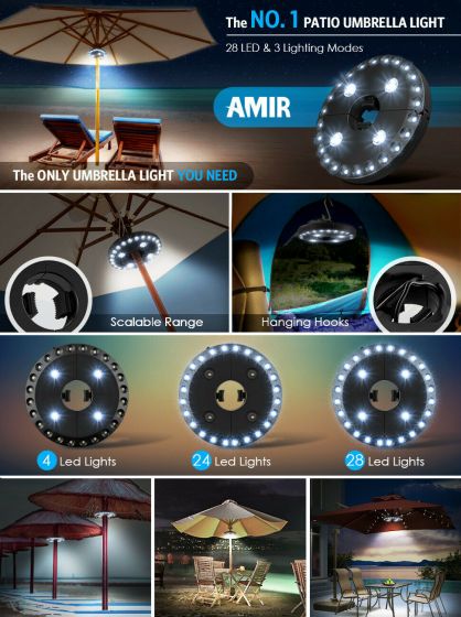 Description: Energy-saving and Bright. With 28 energy-saving LED bulbs, Can be used as umbrella light, camping tent...