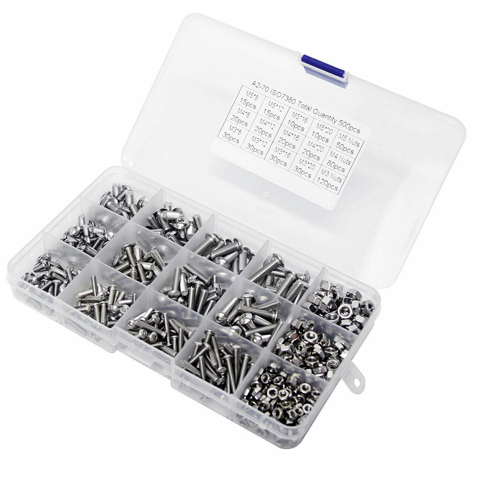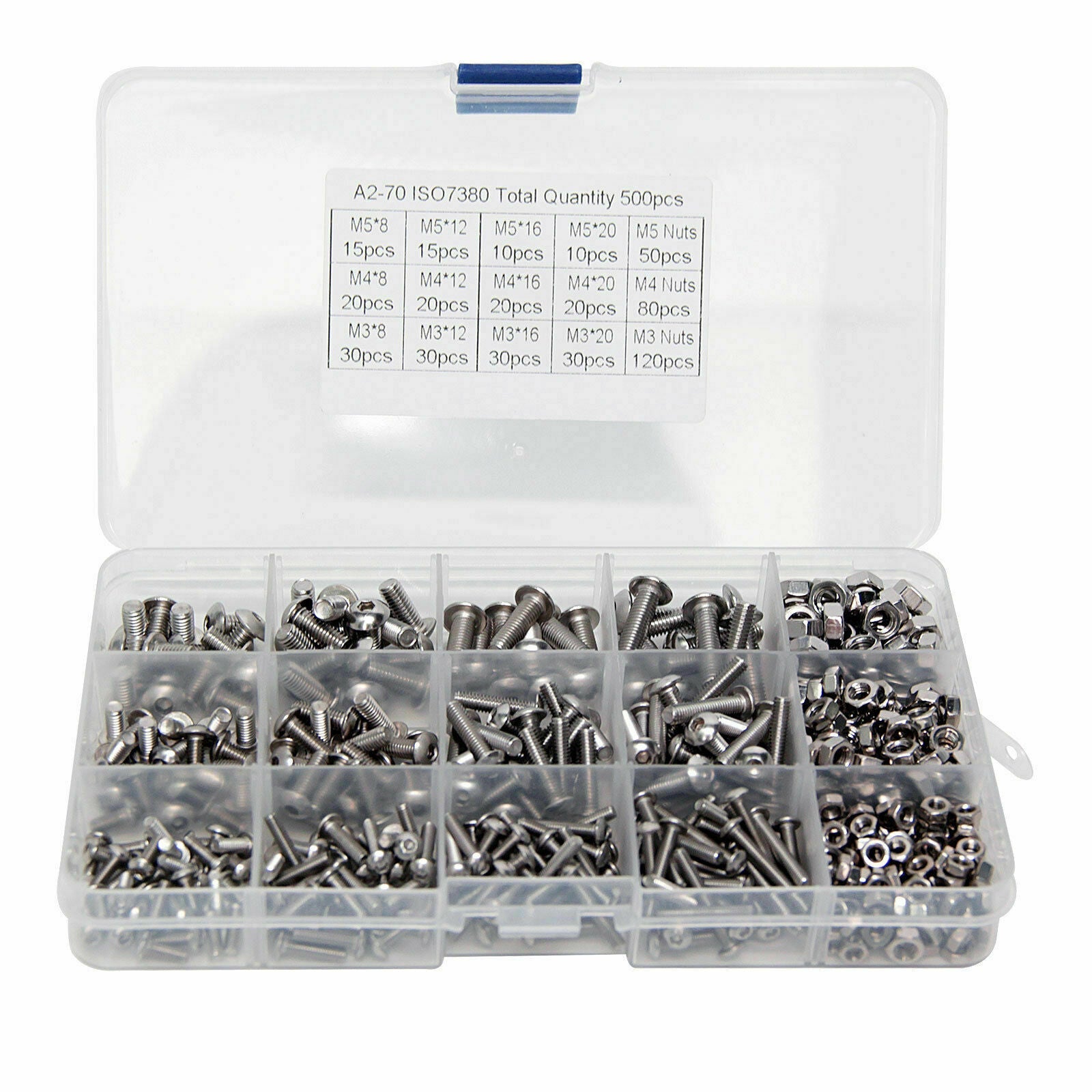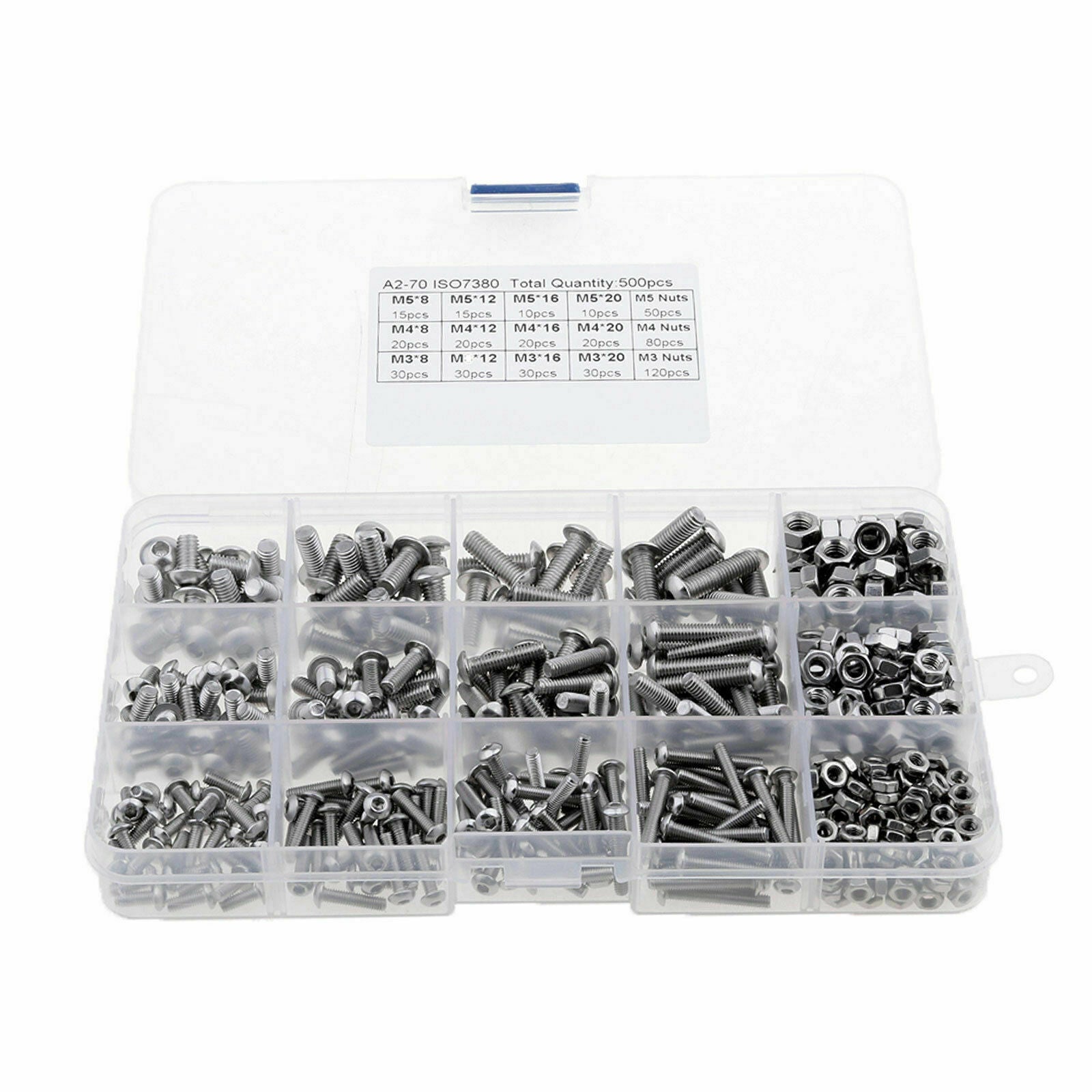 M3 M4 M5 304 500pc Stainless Steel Hex Socket Button Head Bolts Screws Nuts Kit