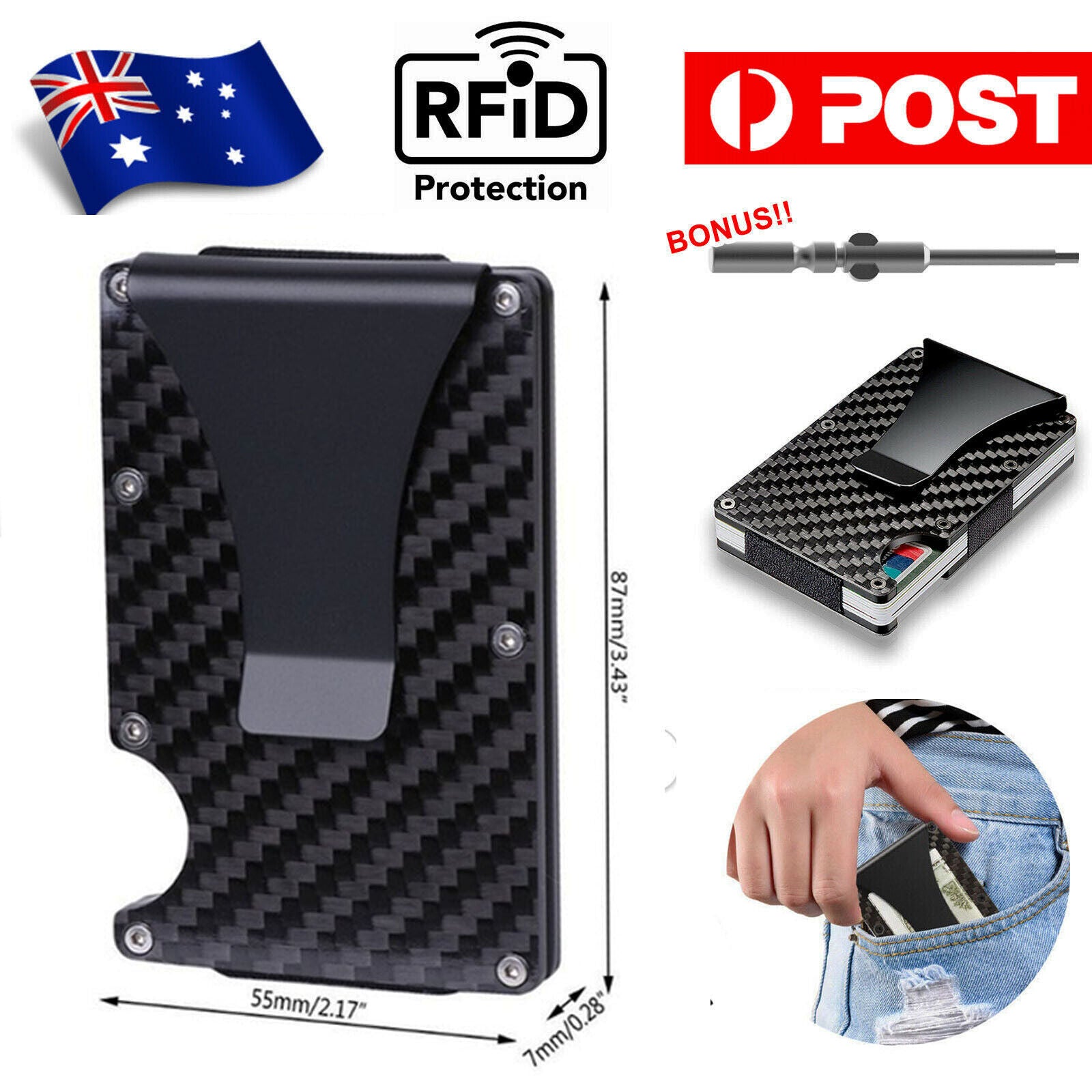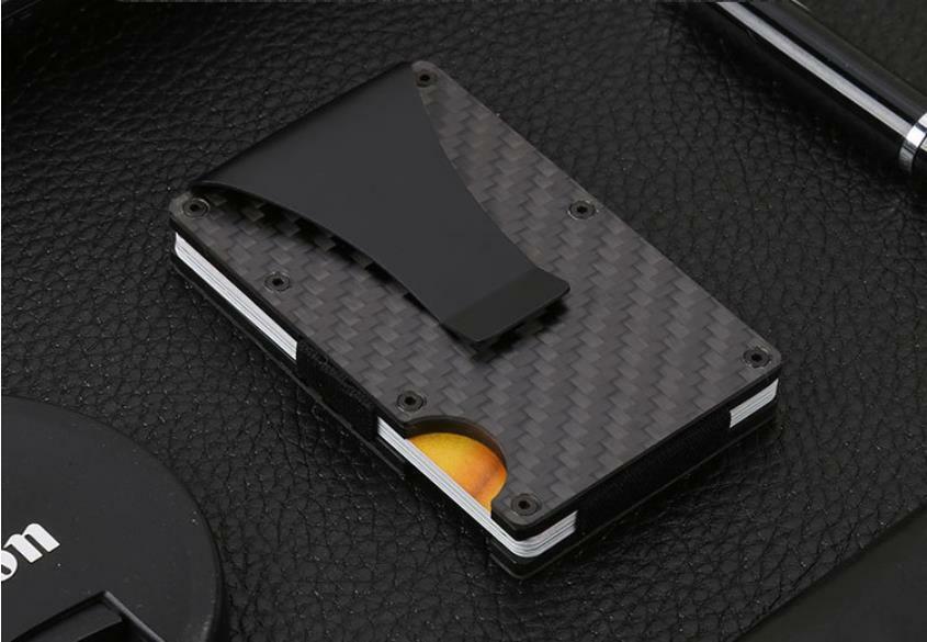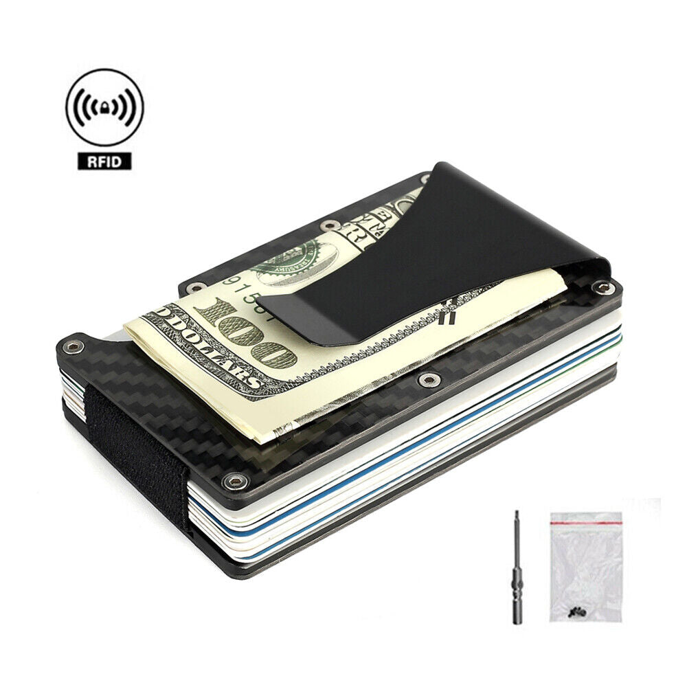 Men Slim Carbon Fiber Credit Card Holder RFID Blocking Metal Wallet Clip
