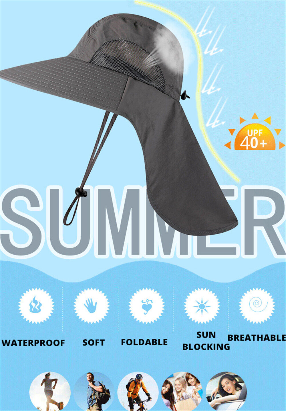 Mens Neck Flap Hat Wide Brim Unisex Hiking Fishing Sun Protection Outdoor Cap AU