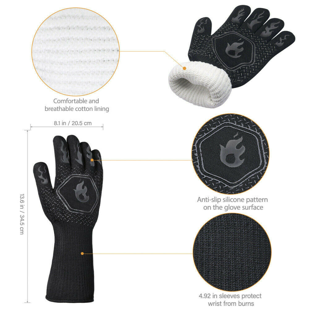 800°C Heat Proof Resistant Oven BBQ Gloves 35cm Kitchen Cooking Silicone Mitt
