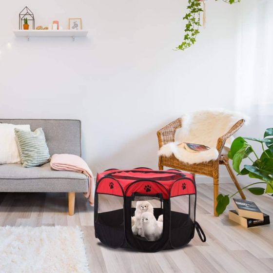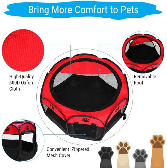 Pet Portable Foldable Playpen, Dog/Cat/Puppy Exercise Pen Kennel, Removable Mesh Shade Cover (Red)
