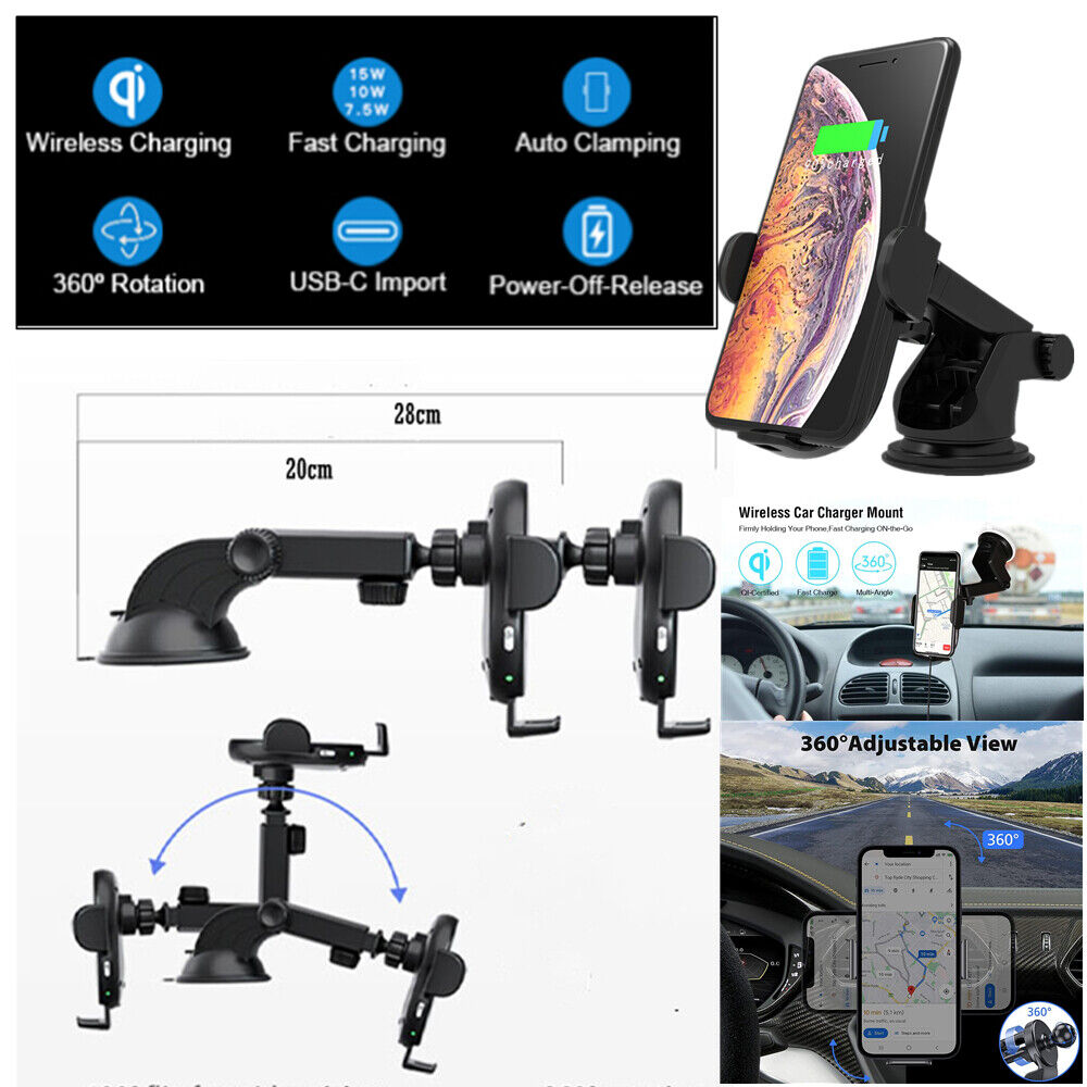 Wireless Fast Charger Car Mount Phone Holder Automatic Clamp Windscreen Stand