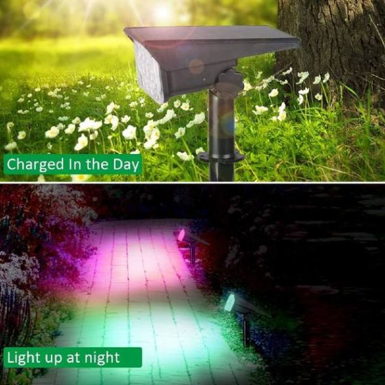 Description: Multicolored Solar Spot Lights: 1 Auto Changing Color Mode + 6 Fixed Color Modes. With long...