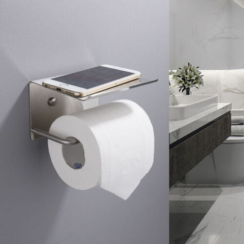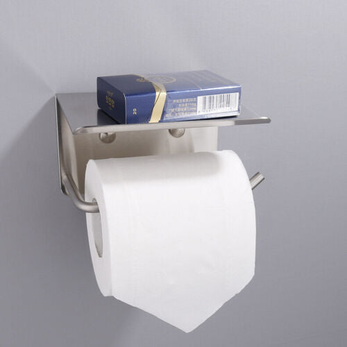 304 Stainless Steel Toilet Roll Holder Paper with Shelf Bathroom Wall Mounted