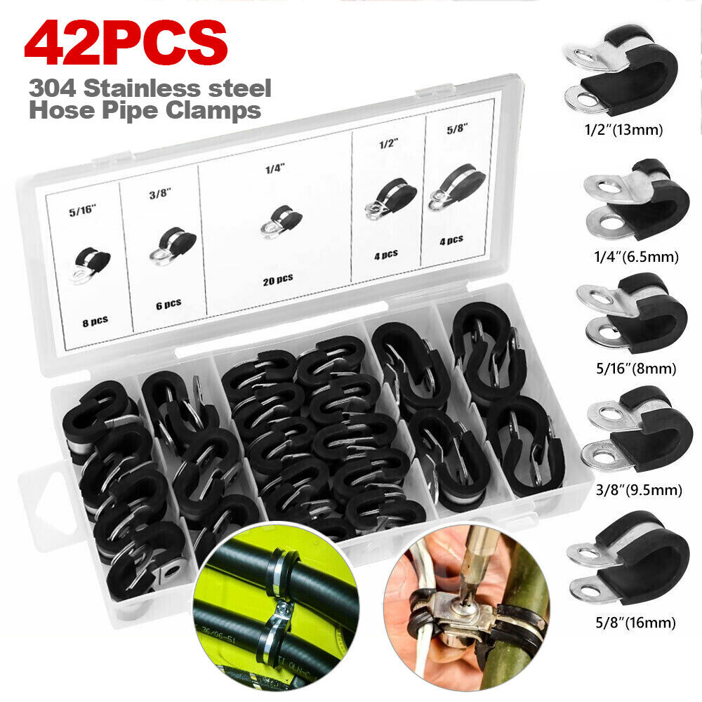 Set 42X EPDM Rubber Lined P Clips Cable Hose Pipe Clamps Holder Air Clip Clamp