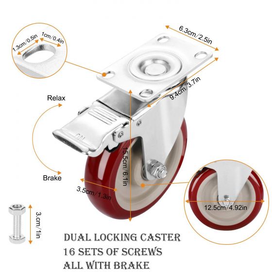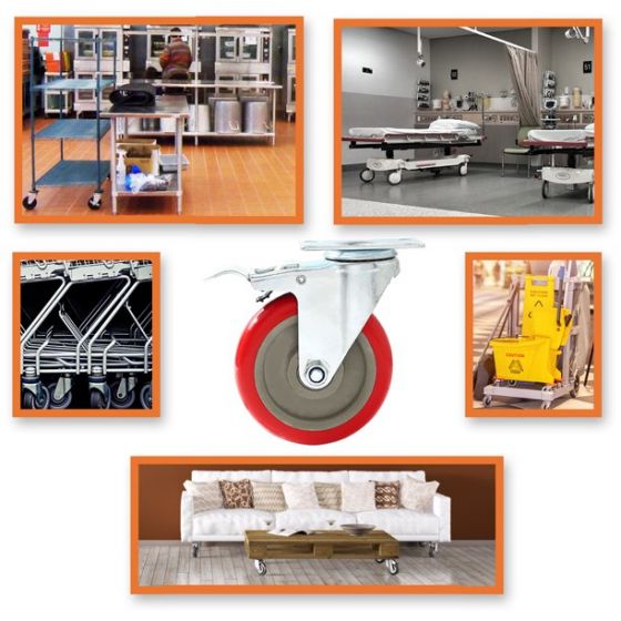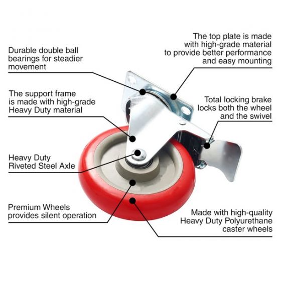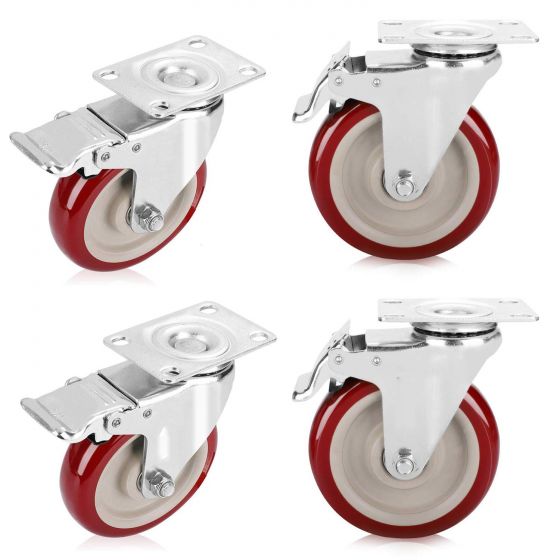 Set of 4 Heavy Duty Swivel Casters with Lock Brakes 5" Polyurethane Wheels