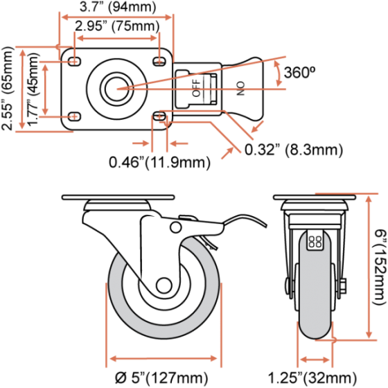 Description: These polyurethane caster wheels equipped with 360 degrees swivel bracket, the wheels can turn to any...
