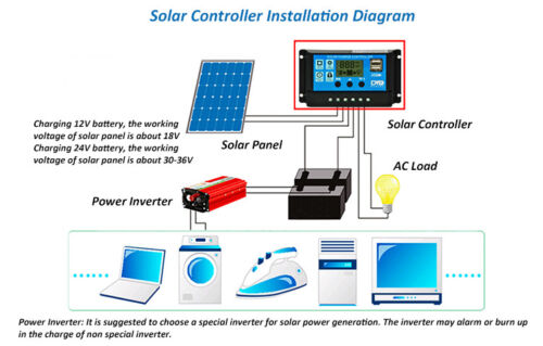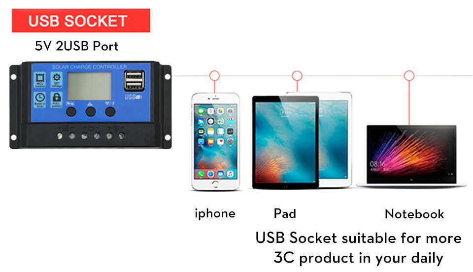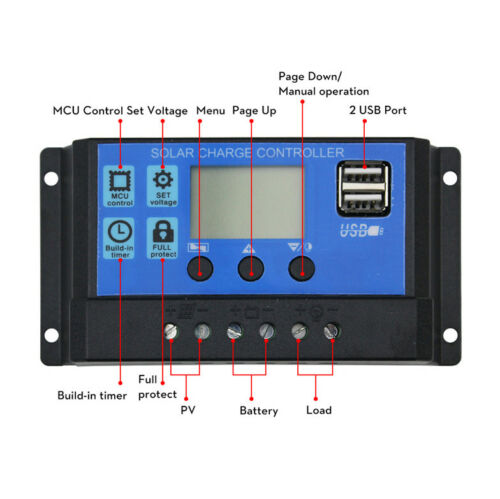 Solar Panel Regulator Charge Controller USB 10A/20A/30A 12V-24V