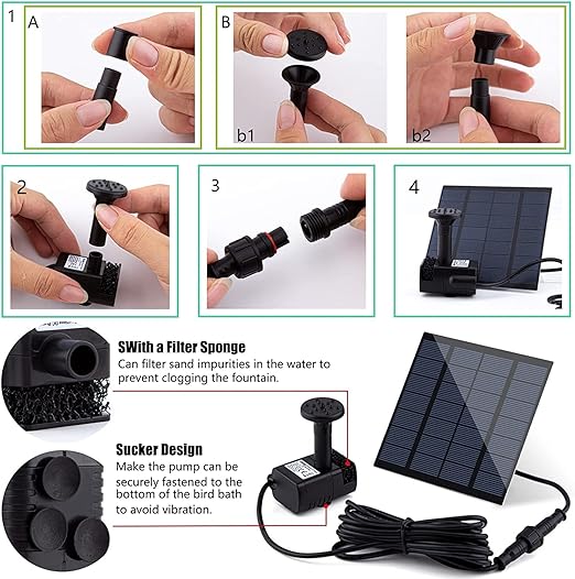 Solar Powered Water Pump Pond Garden Submersible Fountains + Sponge Filter