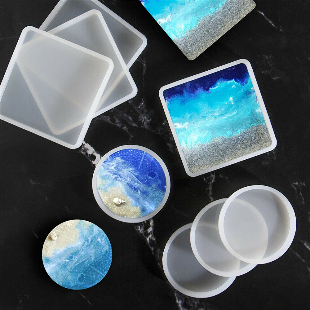 2PC Coaster Resin Cup Casting Mould Epoxy Mold Silicone DIY Jewelry Making Craft