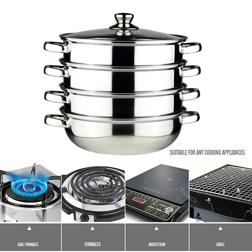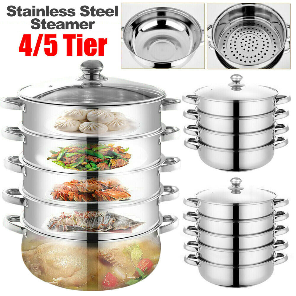 4 /5 Tier Stainless Steel Steamer Meat Vegetable Cooking Steam Pot Kitchen Tool