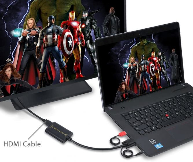 Description: VGA to HDMI Converters - Full HD 1080P VGA to HDMI +3.5mm Audio Video Cable Adapter,...