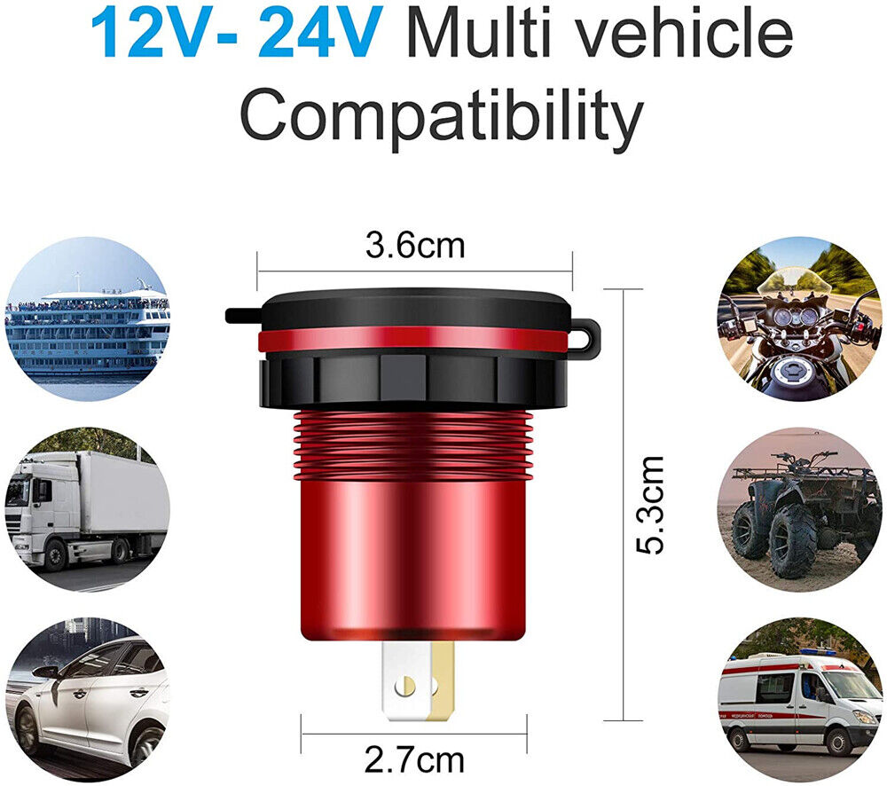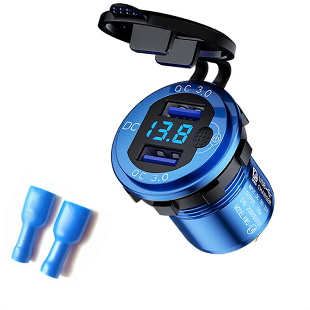 Waterproof Fast Car Phone Charger QC3.0 Dual USB Power Adapter Cigarette Lighter