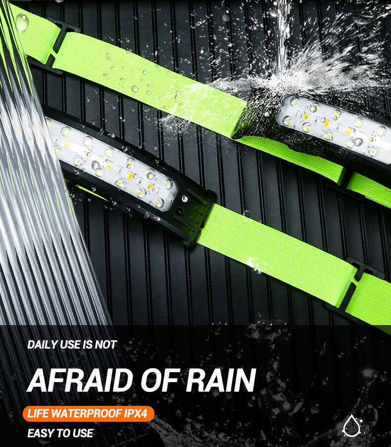 Waterproof LED Motion Sensor Head Torch USB Rechargeable Headlamp